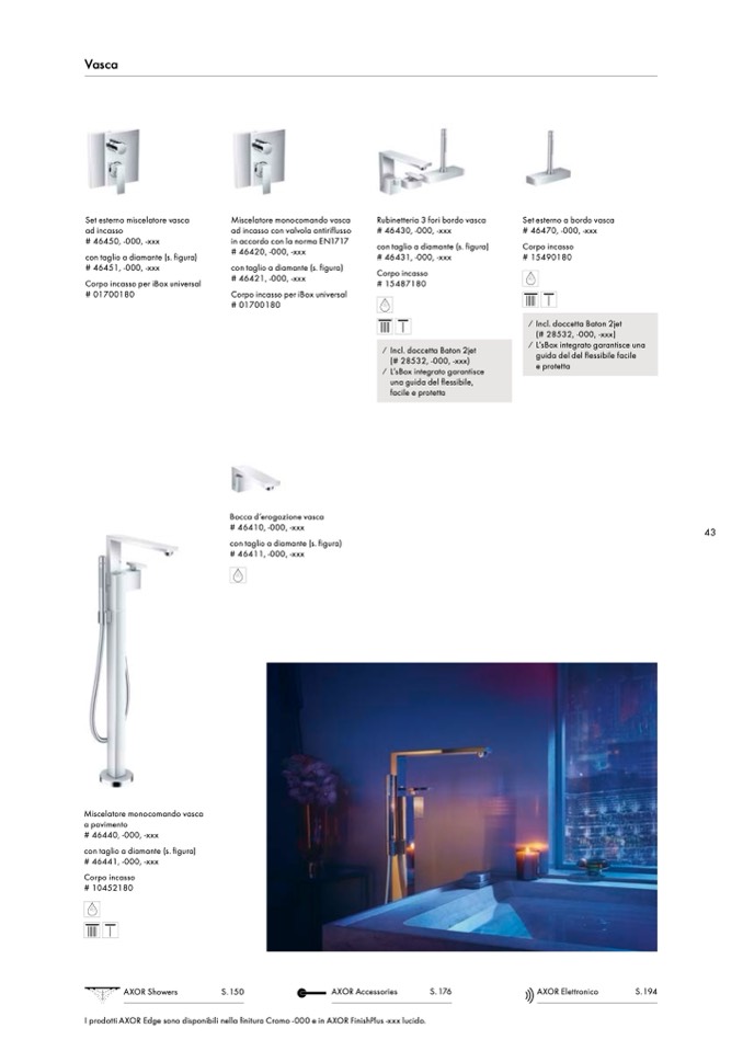 I prodotti AXOR Edge sono disponibili nella finitura Cromo -000 e in AXOR FinishPlus -xxx lucido.
