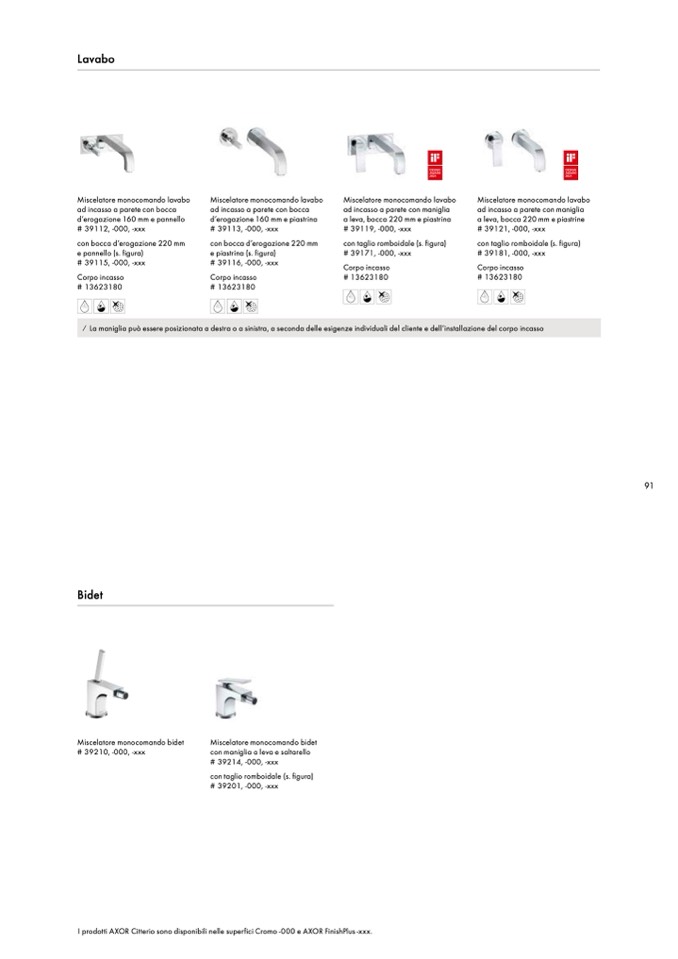 I prodotti AXOR Citterio sono disponibili nelle superfici Cromo -000 e AXOR FinishPlus -xxx.
