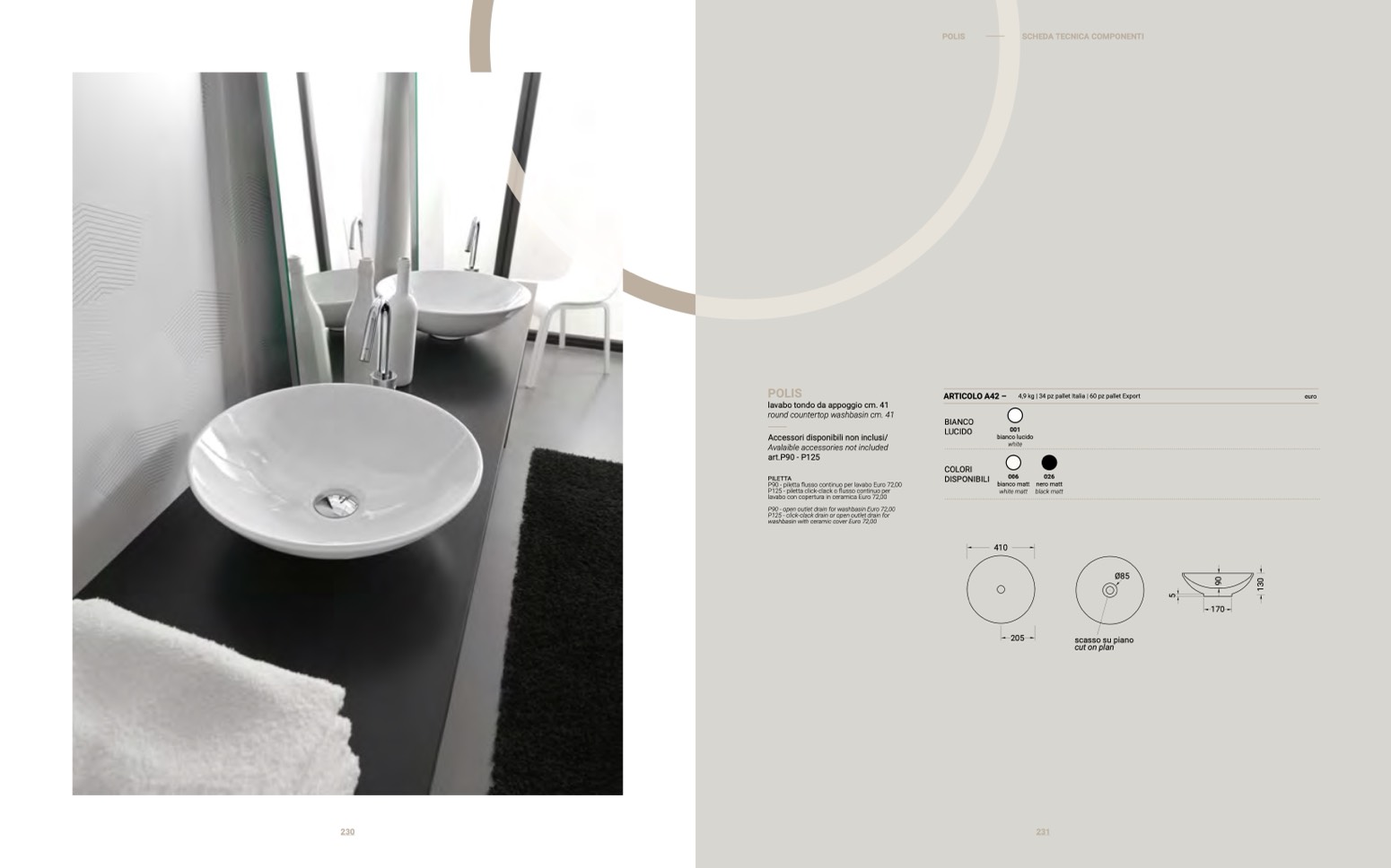 round countertop washbasin cm. 41