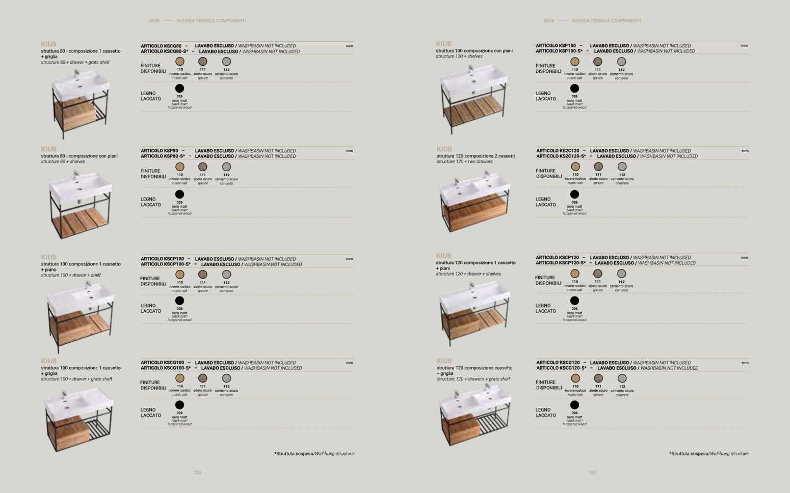 – LAVABO ESCLUSO / WASHBASIN NOT INCLUDED