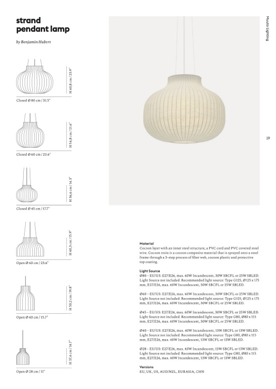 Ø80 – EU/US: E27/E26, max. 60W Incandescent, 30W SBCFL or 25W SBLED.