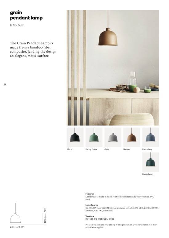 Lampshade is made in mixture of bamboo fibers and polypropolene. PVC