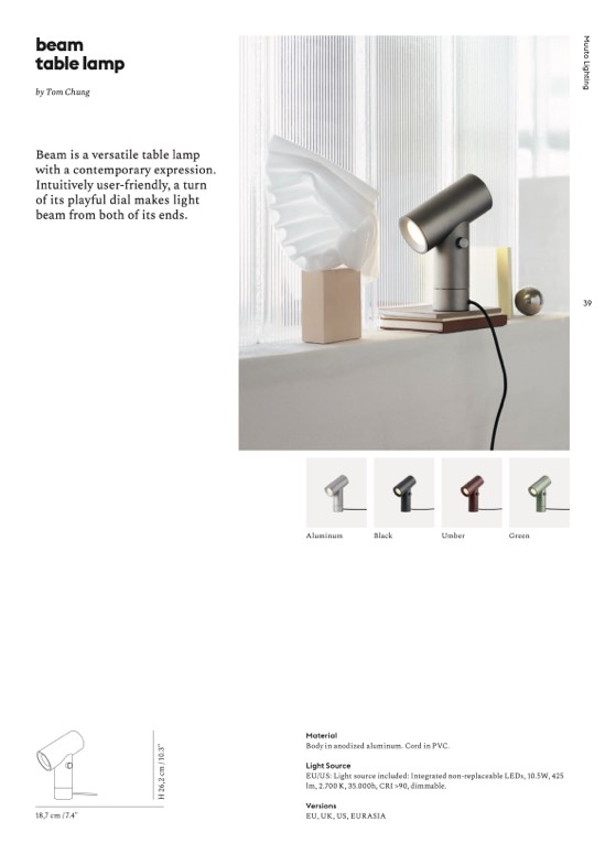 EU/US: Light source included: Integrated non-replaceable LEDs, 10.5W, 425