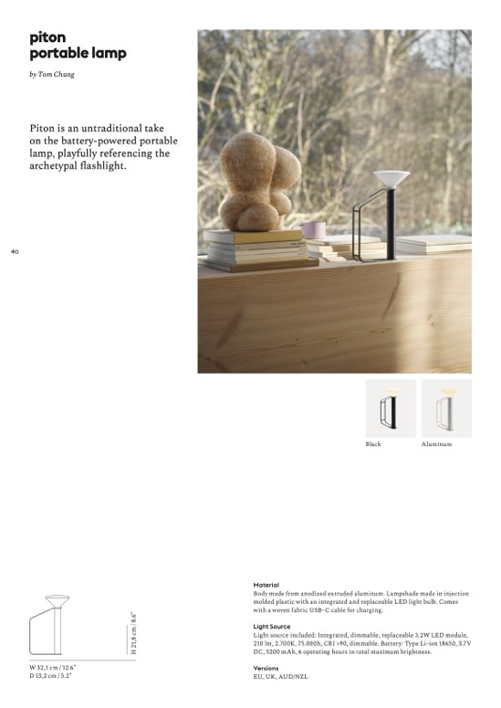 Body made from anodized extruded aluminum. Lampshade made in injection