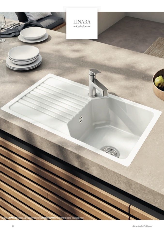 Lavello LINARA 50 Bianco Alpin con miscelatore JUNIS SHOWER nella tonalit