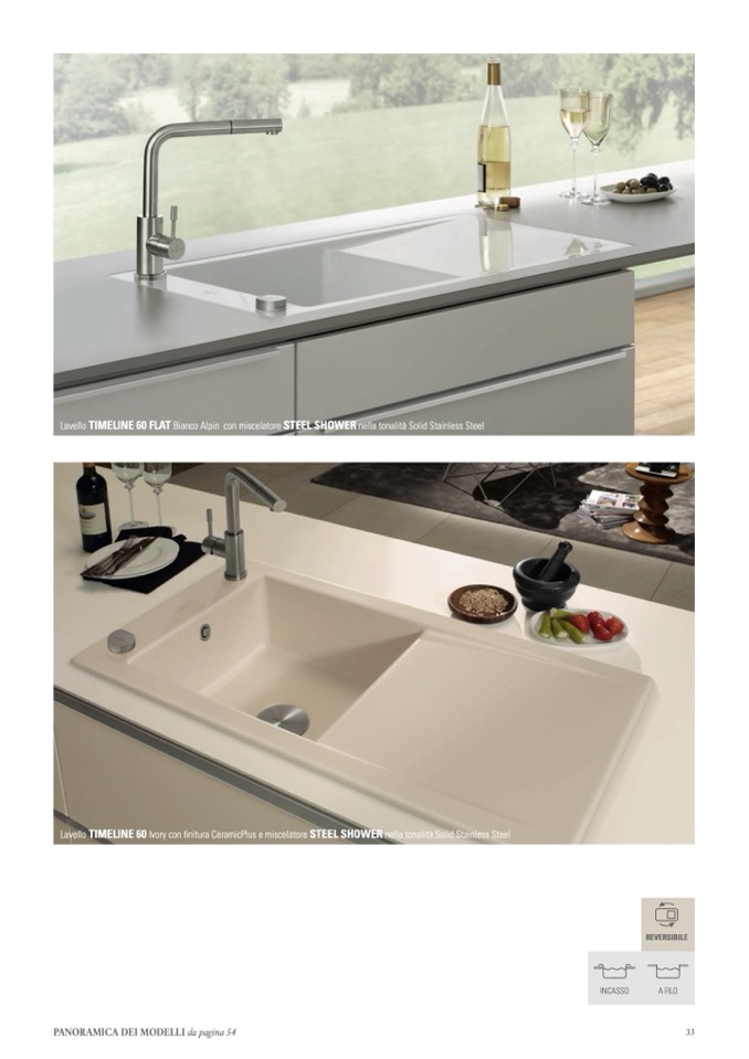 Lavello TIMELINE 60 FLAT Bianco Alpin con miscelatore STEEL SHOWER nella tonalità Solid Stainless Steel