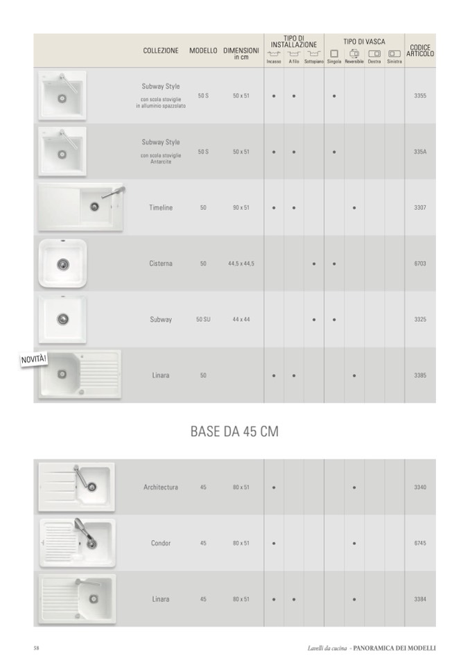 Lavelli da cucina - PANORAMICA DEI MODELLI