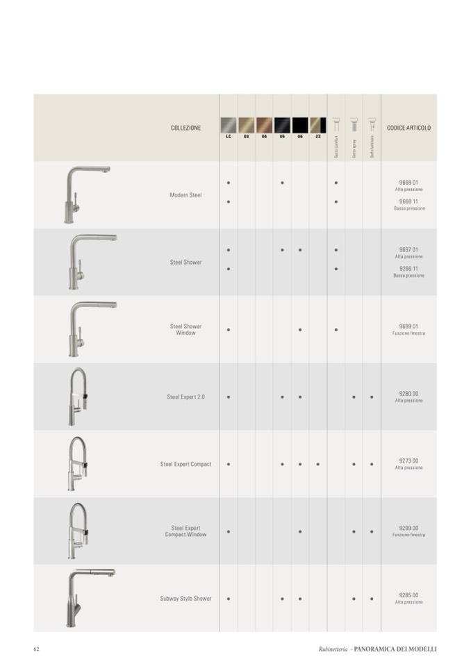 Rubinetteria - PANORAMICA DEI MODELLI
