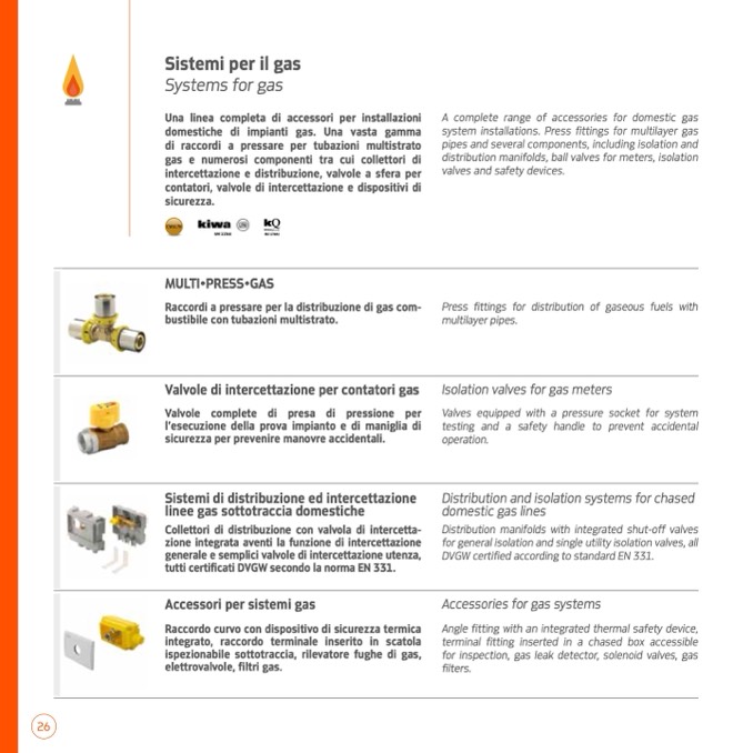 domestiche di impianti gas. Una vasta gamma