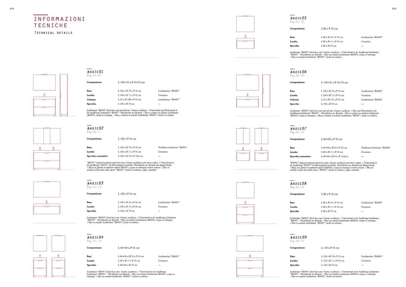der Ausführung “BA991” mit Barrierepapier beschichtet. Waschbecken aus Keramik und Spiegelschrank.