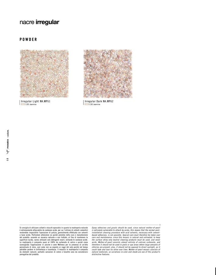del prodotto: essendo un mosaico naturale e non trattato, al fine di mantenere la