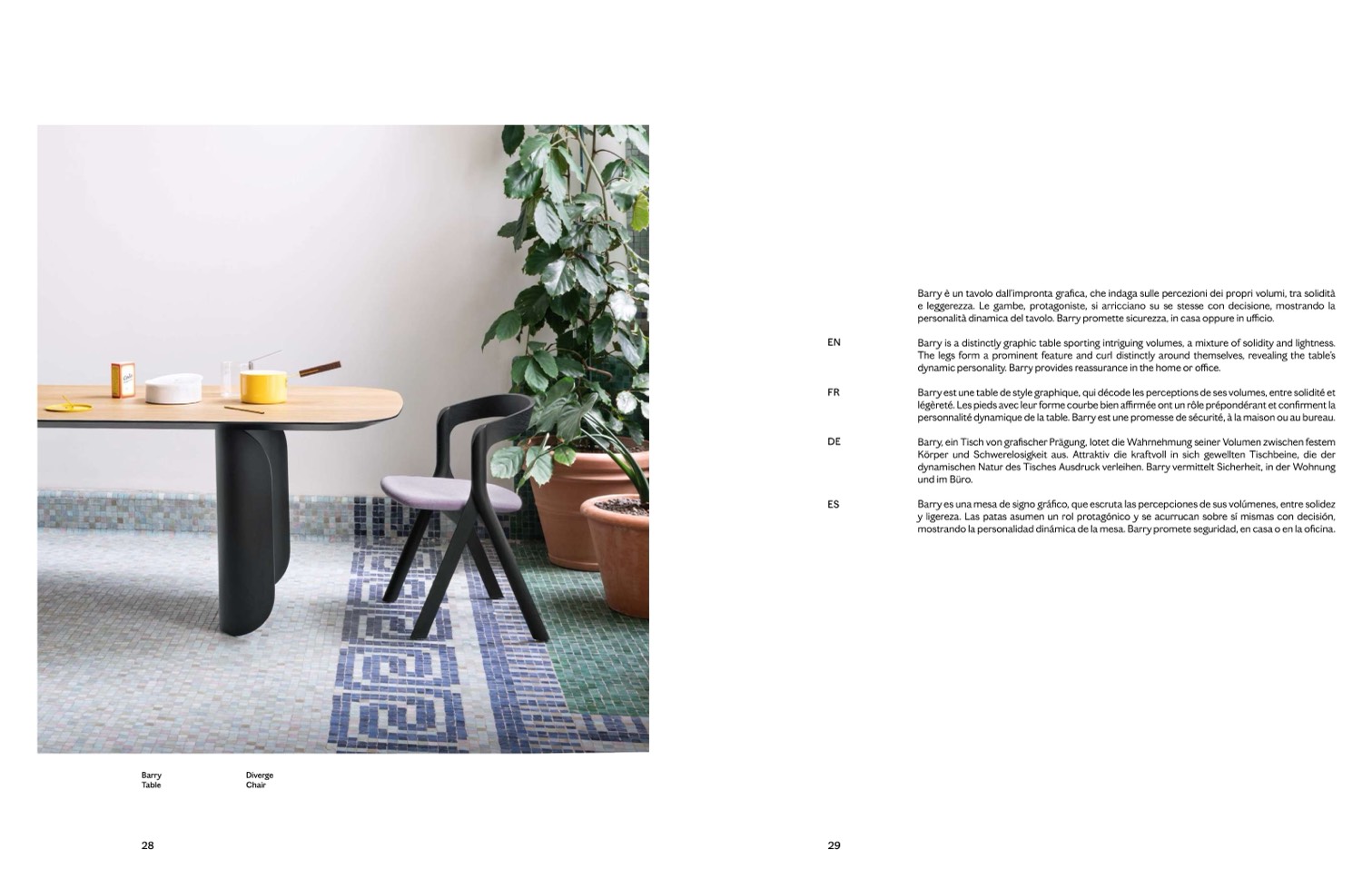 Barry è un tavolo dall’impronta grafica, che indaga sulle percezioni dei propri volumi, tra solidità