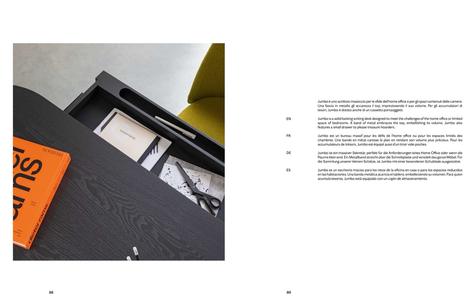 Jumbo è uno scrittoio massiccio per le sfide dell’home office o per gli spazi contenuti delle camere.