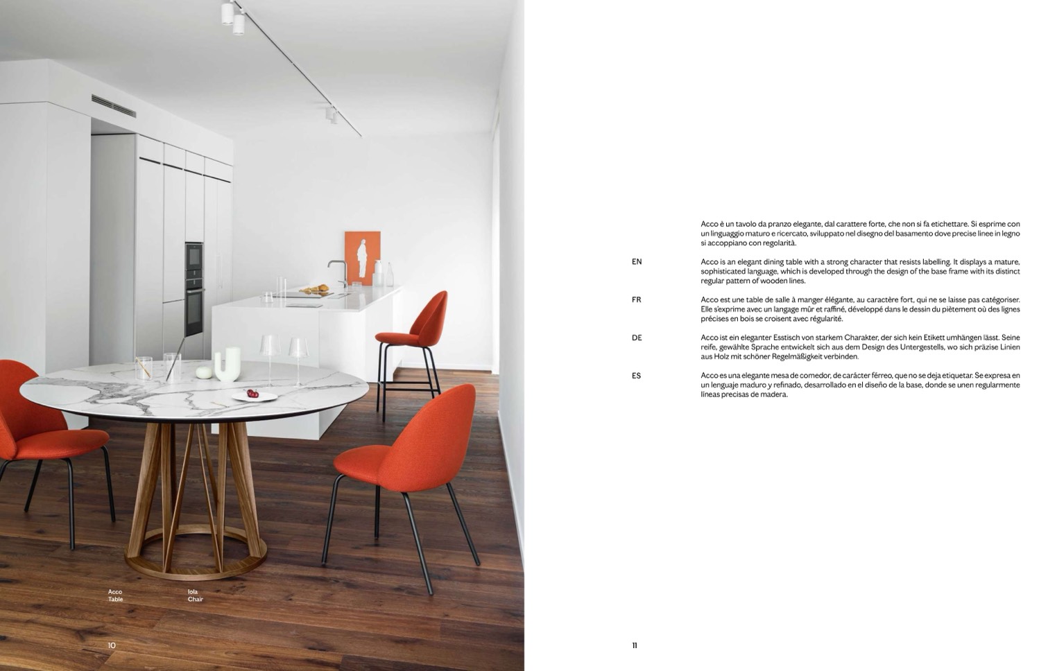 Acco es una elegante mesa de comedor, de carácter férreo, que no se deja etiquetar. Se expresa en