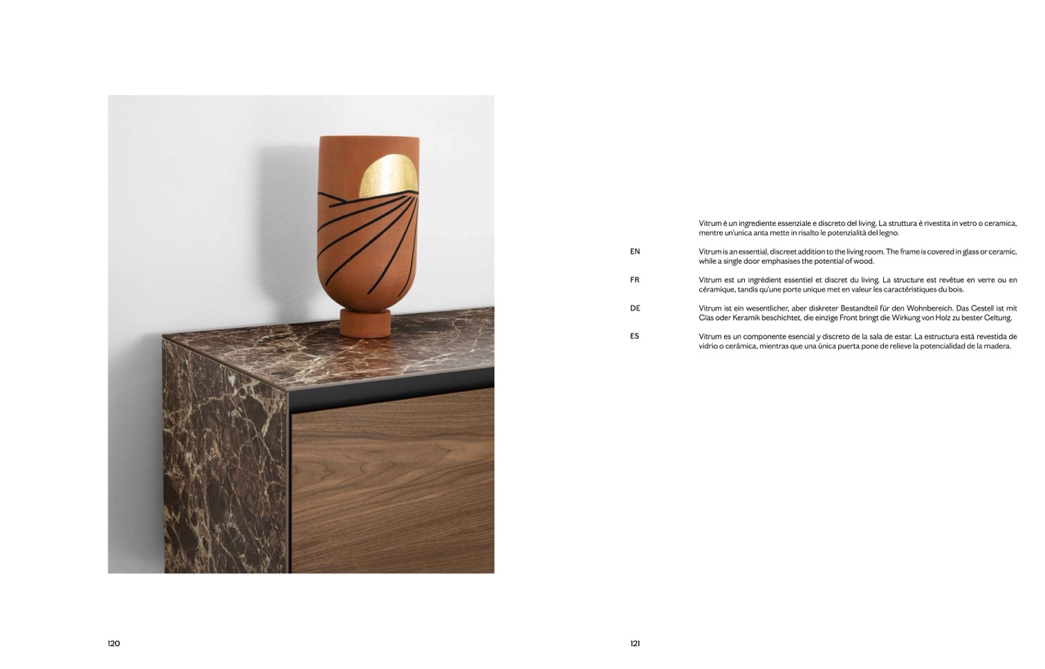 Vitrum è un ingrediente essenziale e discreto del living. La struttura è rivestita in vetro o ceramica,