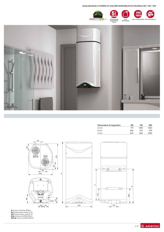 SCALDACQUA A POMPA DI CALORE MONOBLOCCO MURALE 80 / 110 / 150