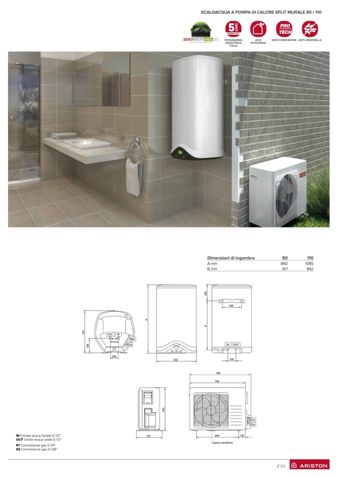 SCALDACQUA A POMPA DI CALORE SPLIT MURALE 80 / 110