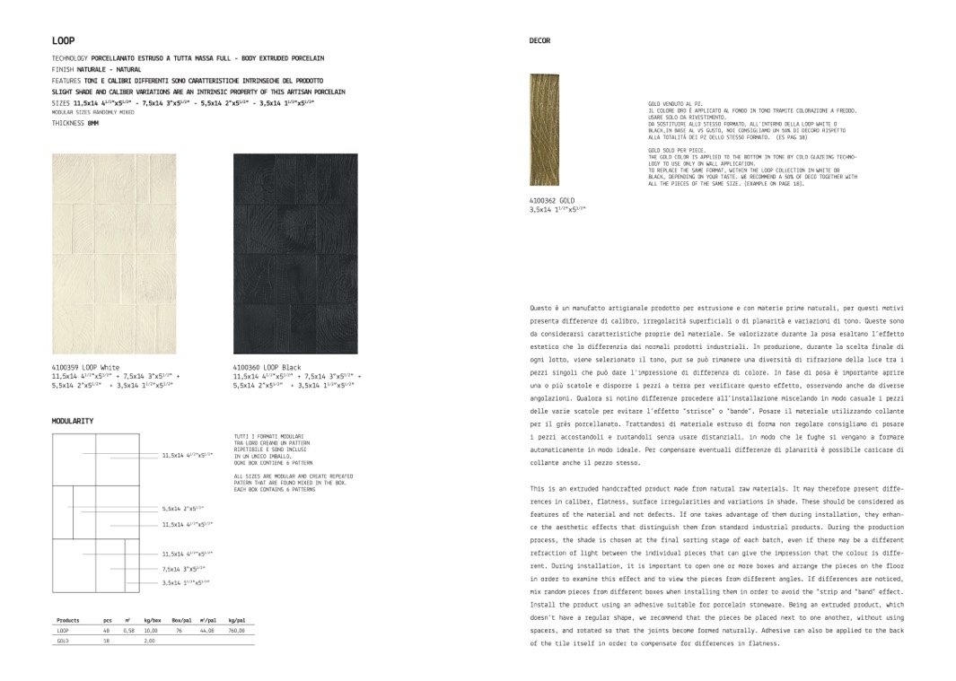 per il grès porcellanato. Trattandosi di materiale estruso di forma non regolare consigliamo di posare