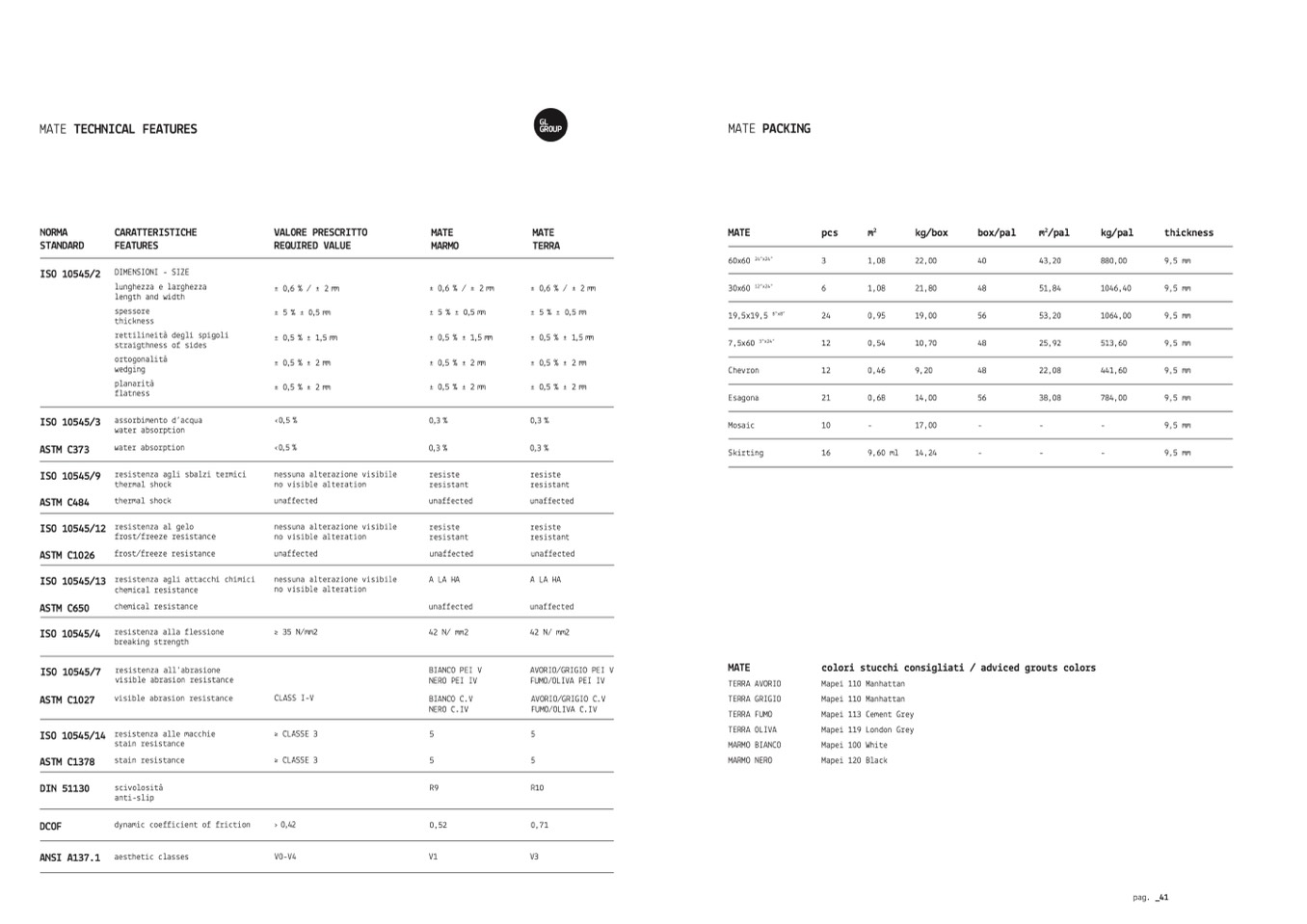 colori stucchi consigliati / adviced grouts colors