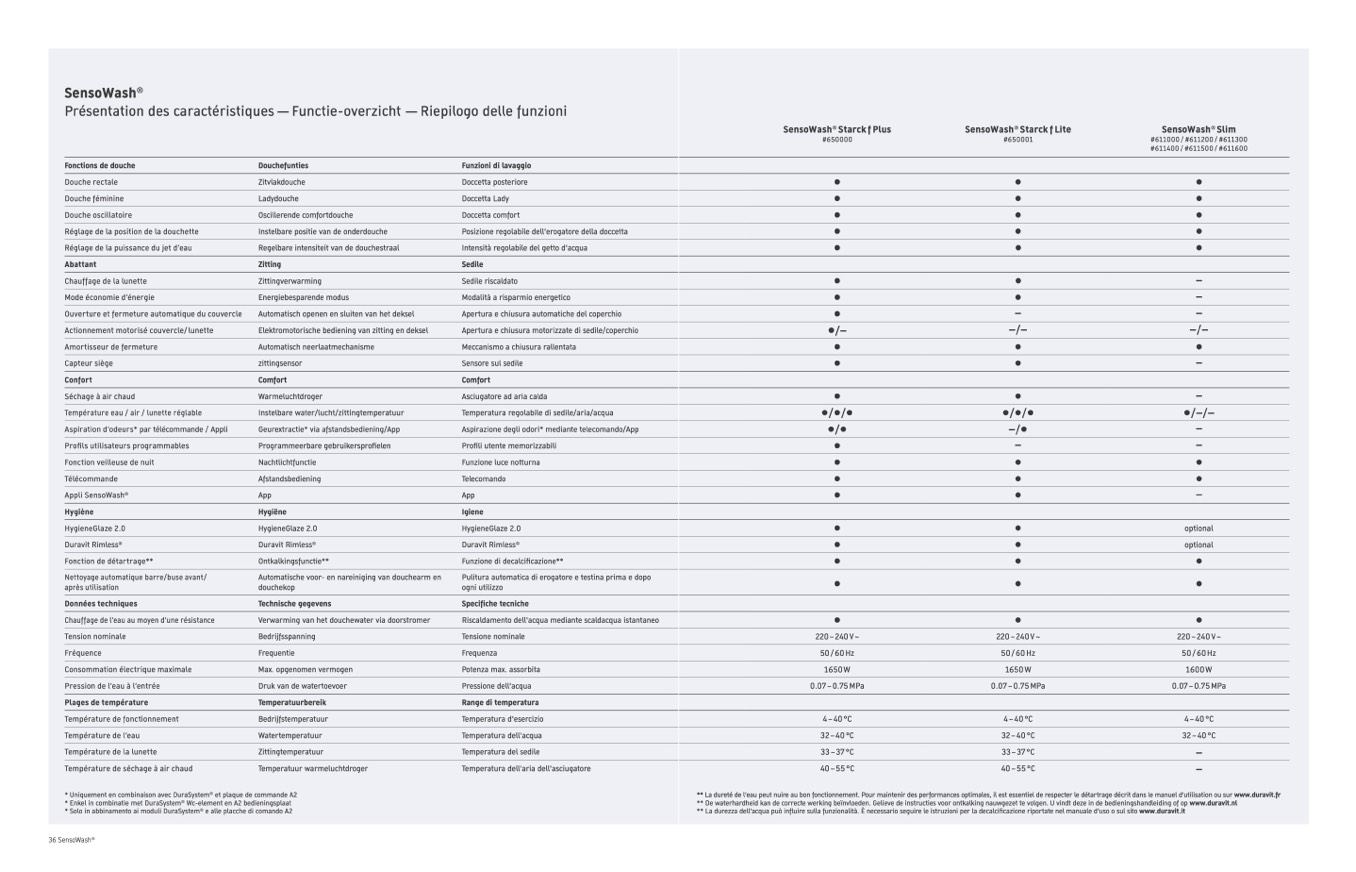 ** La durezza dell'acqua può influire sulla funzionalità. È necessario seguire le istruzioni per la decalcificazione riportate nel manuale d'uso o sul sito www.duravit.it