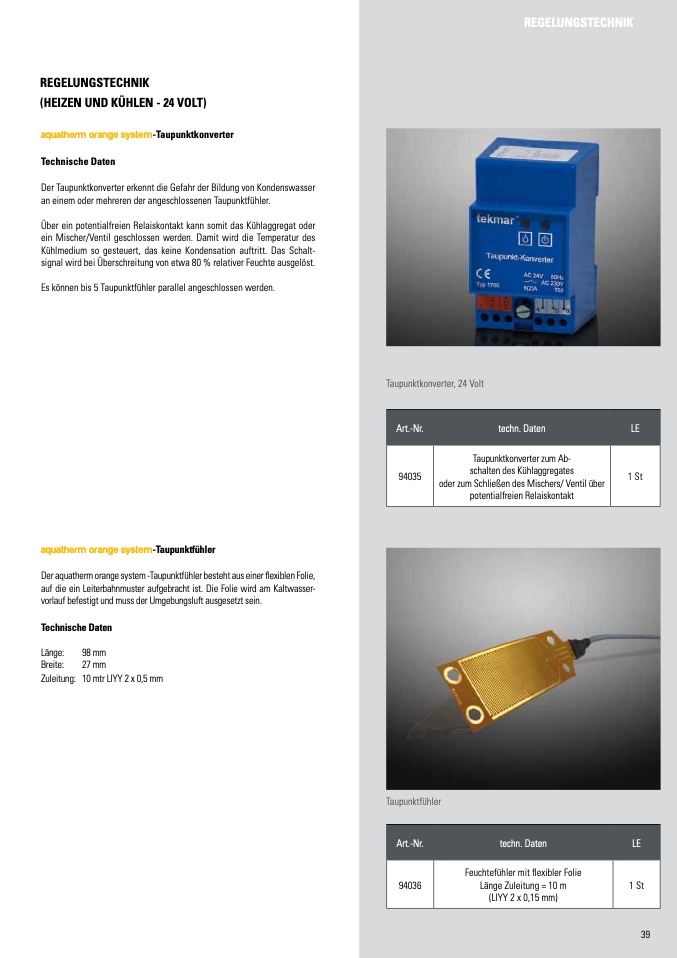 Der aquatherm orange system -Taupunktfühler besteht aus einer flexiblen Folie,