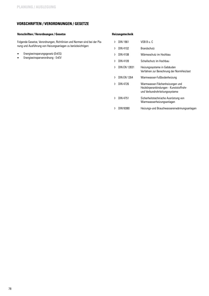 nung und Ausführung von Heizungsanlagen zu berücksichtigen: