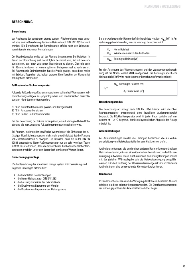 Vor Auslegung der aquatherm orange system -Flächenheizung muss gene-
