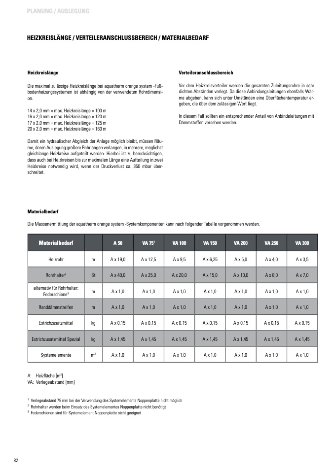 Die maximal zulässige Heizkreislänge bei aquatherm orange system -Fuß-