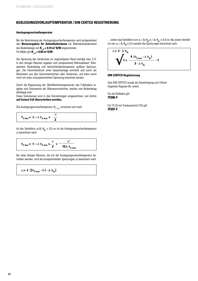 abstand, Bodenbelag und Heizmittelübertemperatur größere Spreizun-