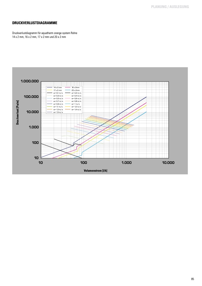 Druckverlustdiagramm für aquatherm orange system Rohre
