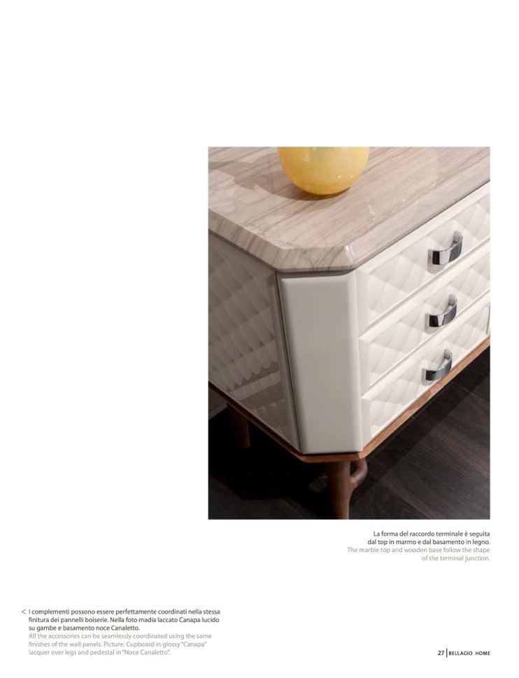 finitura dei pannelli boiserie. Nella foto madia laccato Canapa lucido