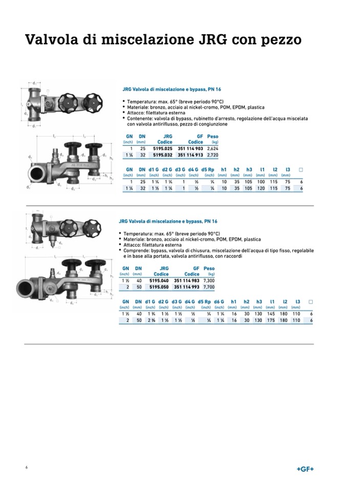 JRG Va(livnoclah)di m(miscmel)azione e bypass, PN 16
