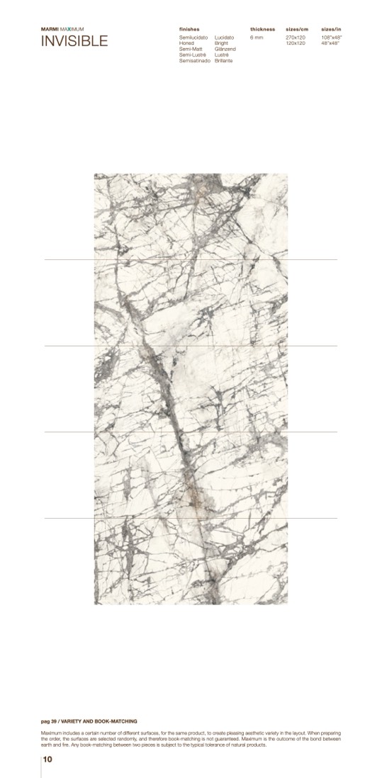 Maximum includes a certain number of different surfaces, for the same product, to create pleasing aesthetic variety in the layout. When preparing
