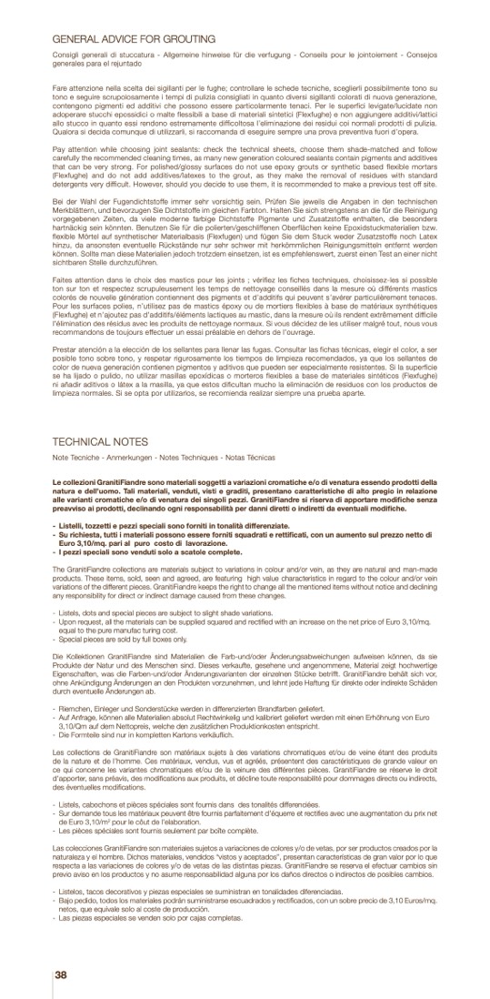 Consigli generali di stuccatura - Allgemeine hinweise für die verfugung - Conseils pour le jointoiement - Consejos