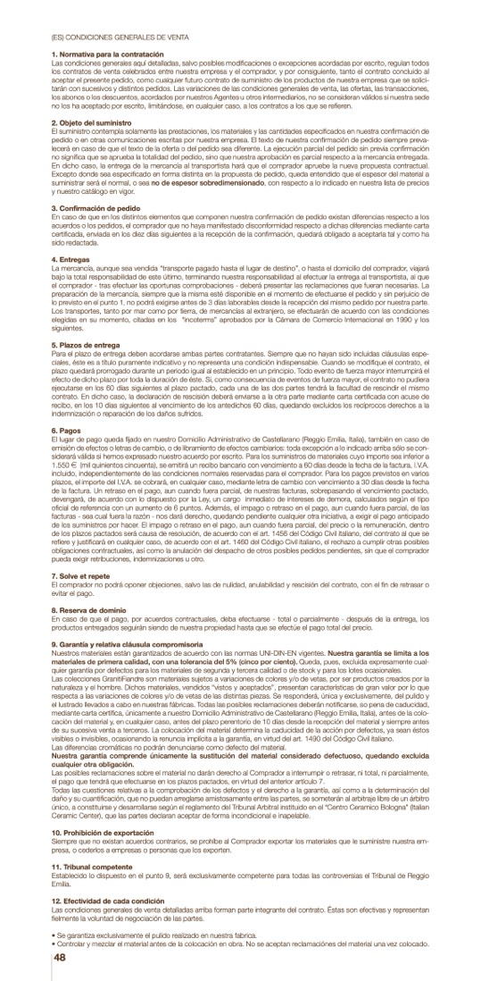 El lugar de pago queda fijado en nuestro Domicilio Administrativo de Castellarano (Reggio Emilia, Italia), también en caso de