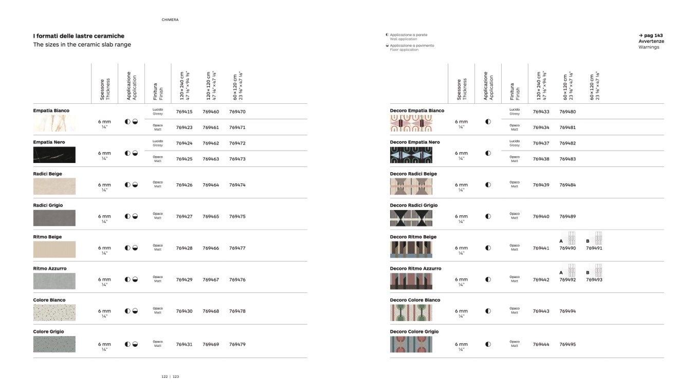 The sizes in the ceramic slab range