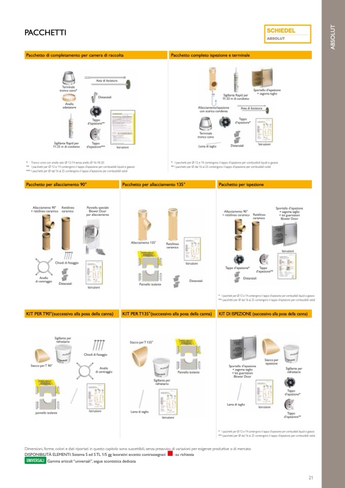 *** I pacchetti per Ø dal 16 al 25 contengono il tappo d’ispezione per combustibili solidi