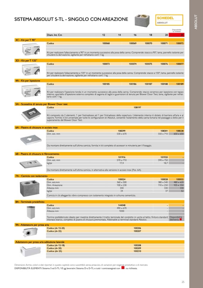 DISPONIBILITÀ ELEMENTI: Sistema S ed S-TL 1/5 gg lavorativi. Sistema D e D-TL e tutti i contrassegnati con