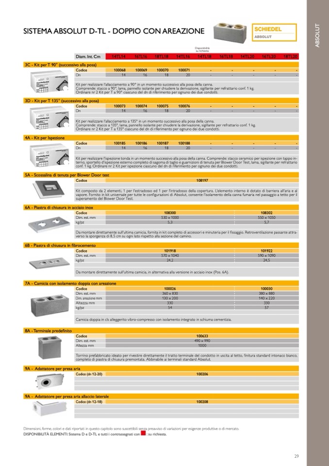DISPONIBILITÀ ELEMENTI: Sistema D e D-TL e tutti i contrassegnati con