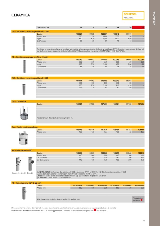 DISPONIBILITÀ ELEMENTI: Diametri dal 12 al 20: 1/5 gg lavorativi. Diametro 25 e tutti i contrassegnati con
