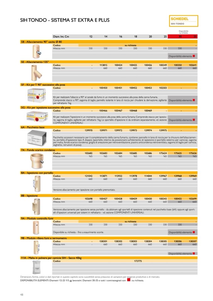 DISPONIBILITÀ ELEMENTI: Diametri 12-25 1/5 gg lavorativi. Diametri 30-35 e tutti i contrassegnati con