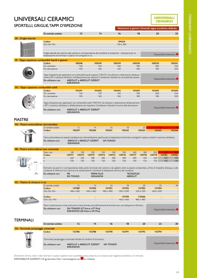 DISPONIBILITÀ ELEMENTI: 1/5 gg lavorativi.Tutti i contrassegnati con