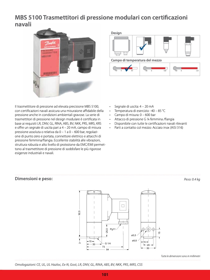 trasmettitori di pressione nel design modulare è certificata in