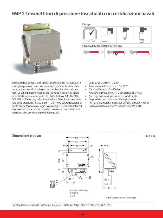 Il trasmettitore di pressione EMP 2, approvato per l’uso navale, è •