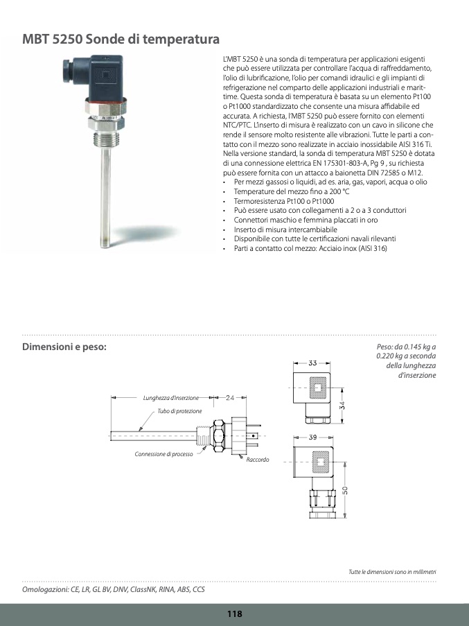 Nella versione standard, la sonda di temperatura MBT 5250 è dotata