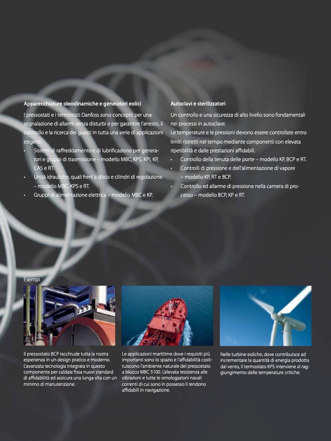 I pressostati e i termostati Danfoss sono concepiti per una
