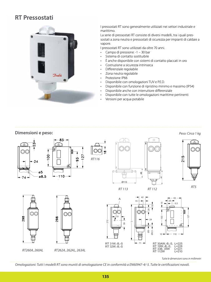 La serie di pressostati RT consiste di diversi modelli, tra i quali pres-
