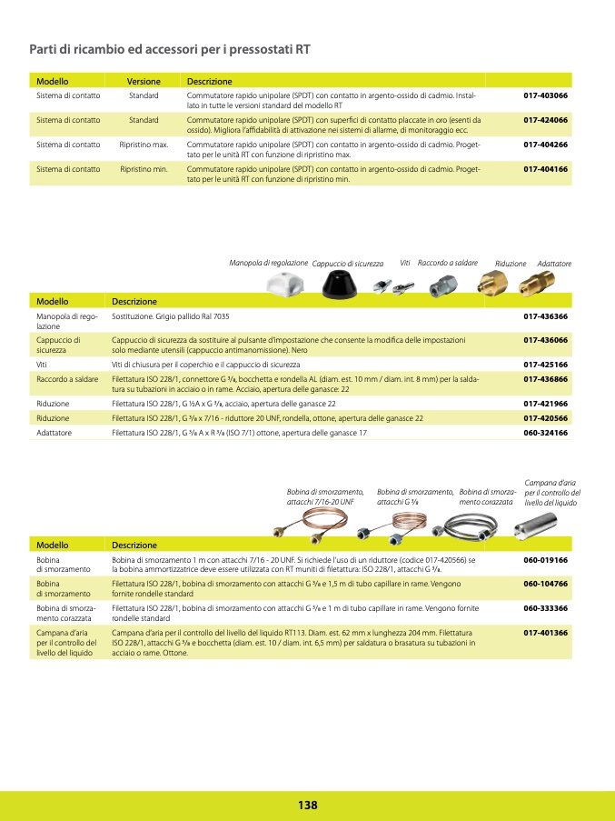 la bobina ammortizzatrice deve essere utilizzata con RT muniti di filetattura: ISO 228/1, attacchi G 3/8.