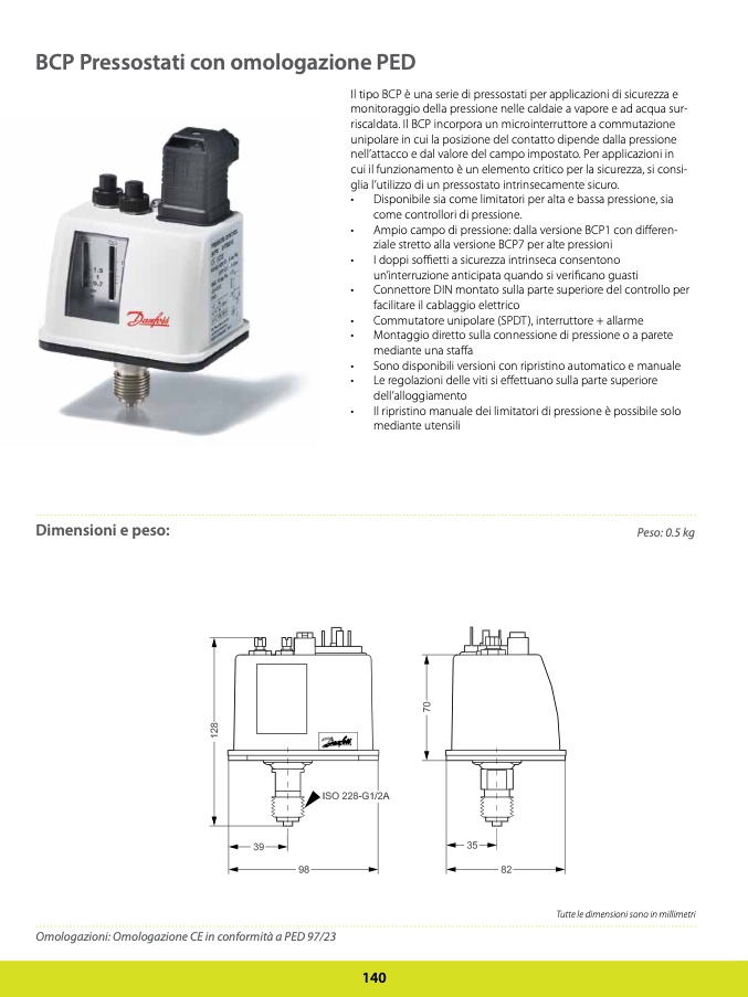 Il tipo BCP è una serie di pressostati per applicazioni di sicurezza e