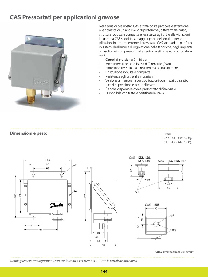 plicazioni interne ed esterne. I pressostati CAS sono adatti per l’uso